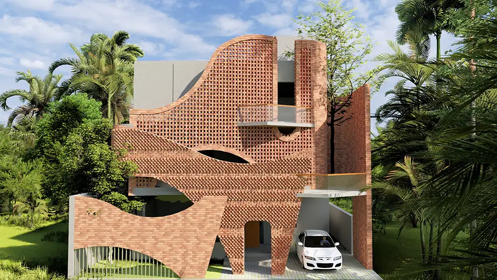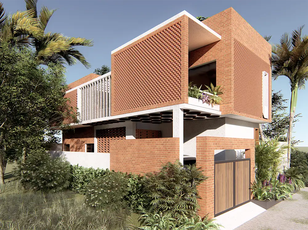 exposed bricks, inspire us to incorporate brick jaali walls extensively throughout the residences,