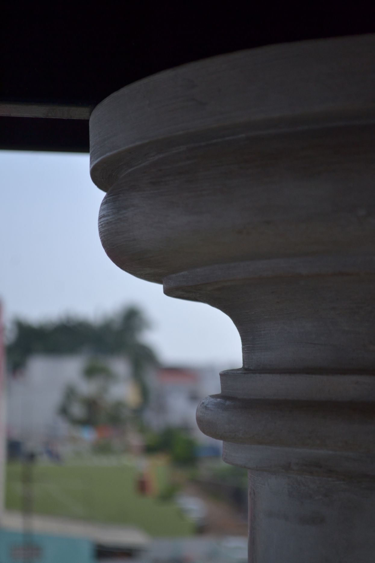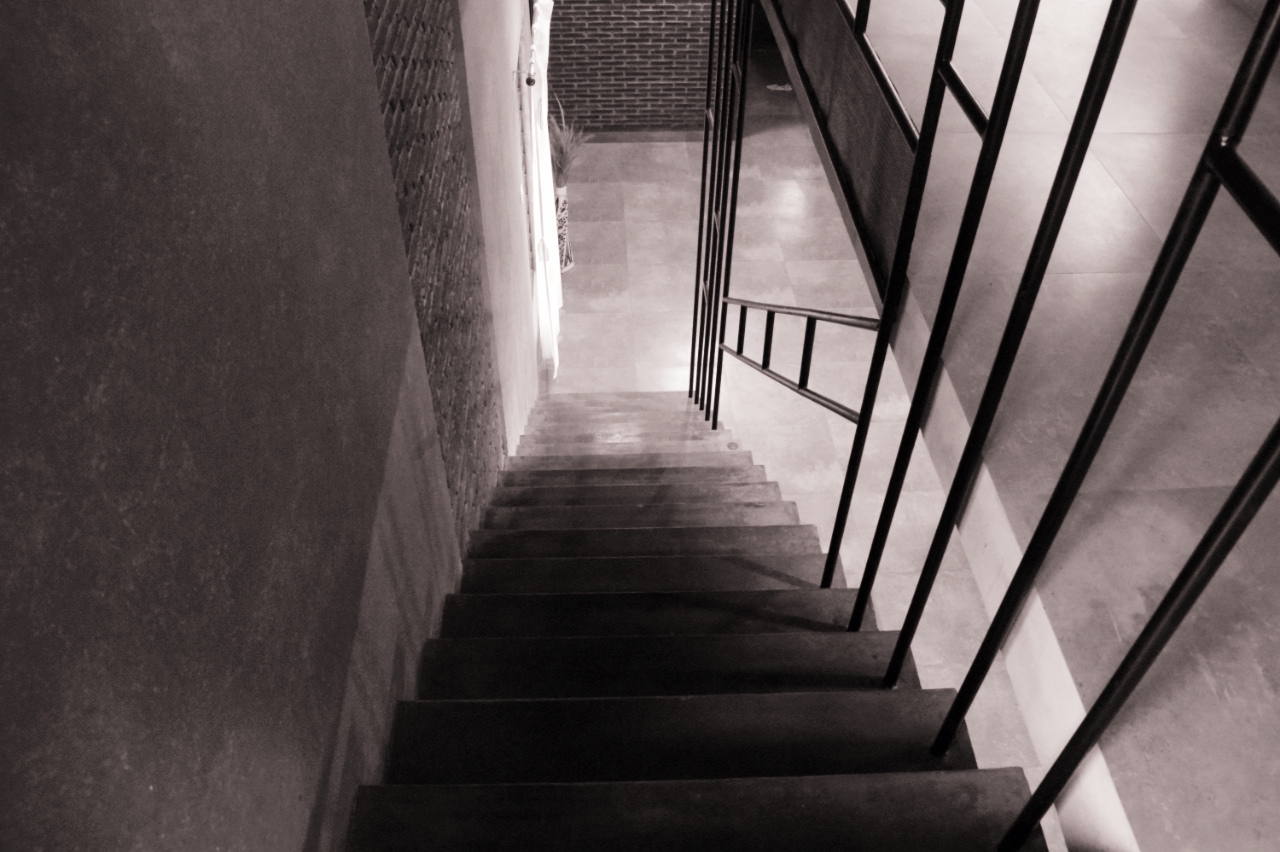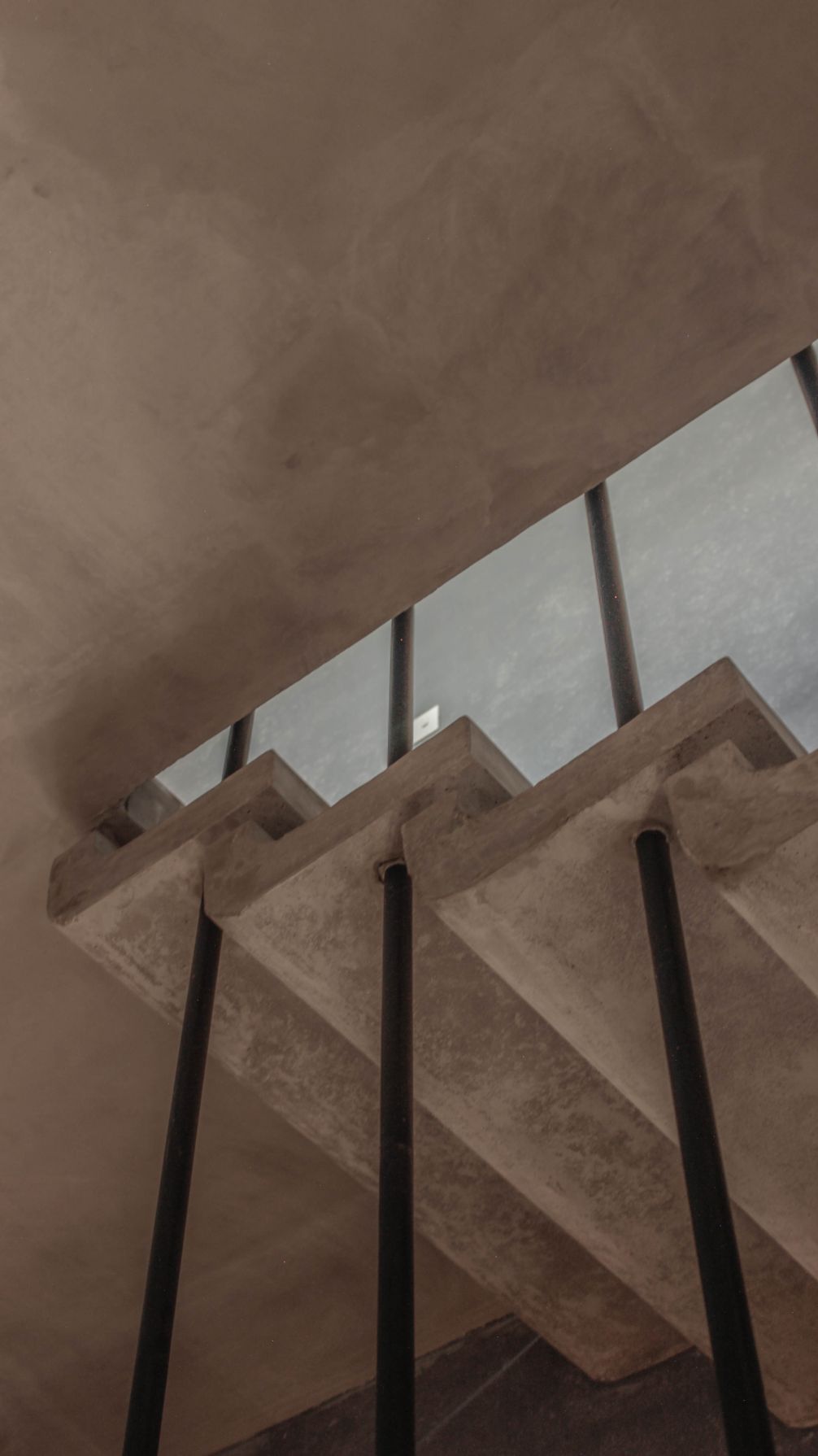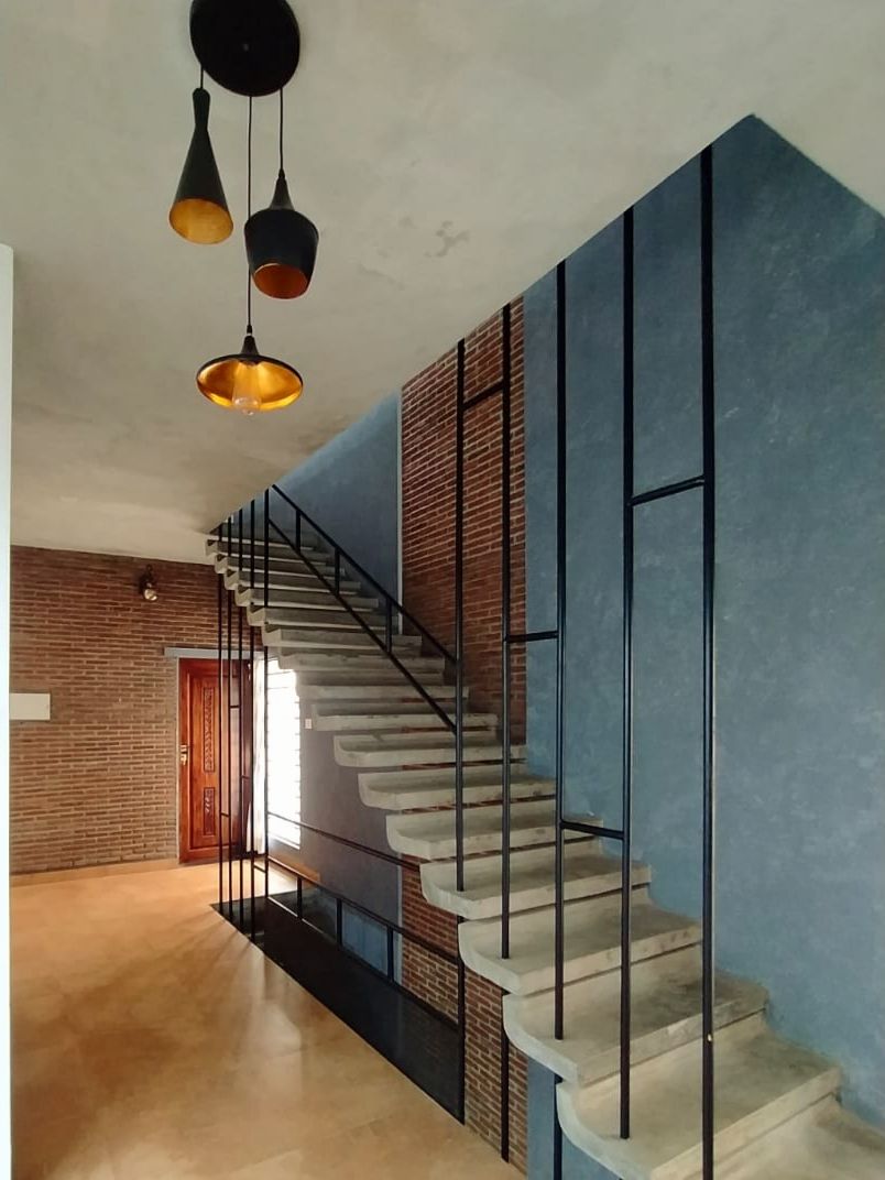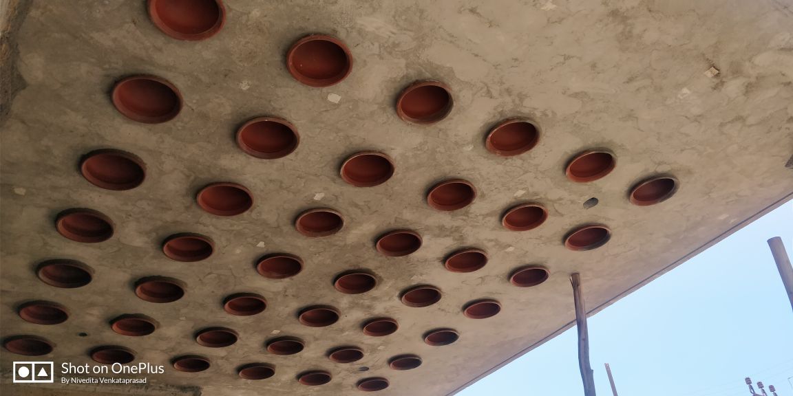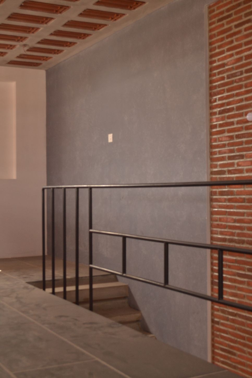 roofs, thin pre-cast cantilevered staircase and exposed un-plastered ceilings.