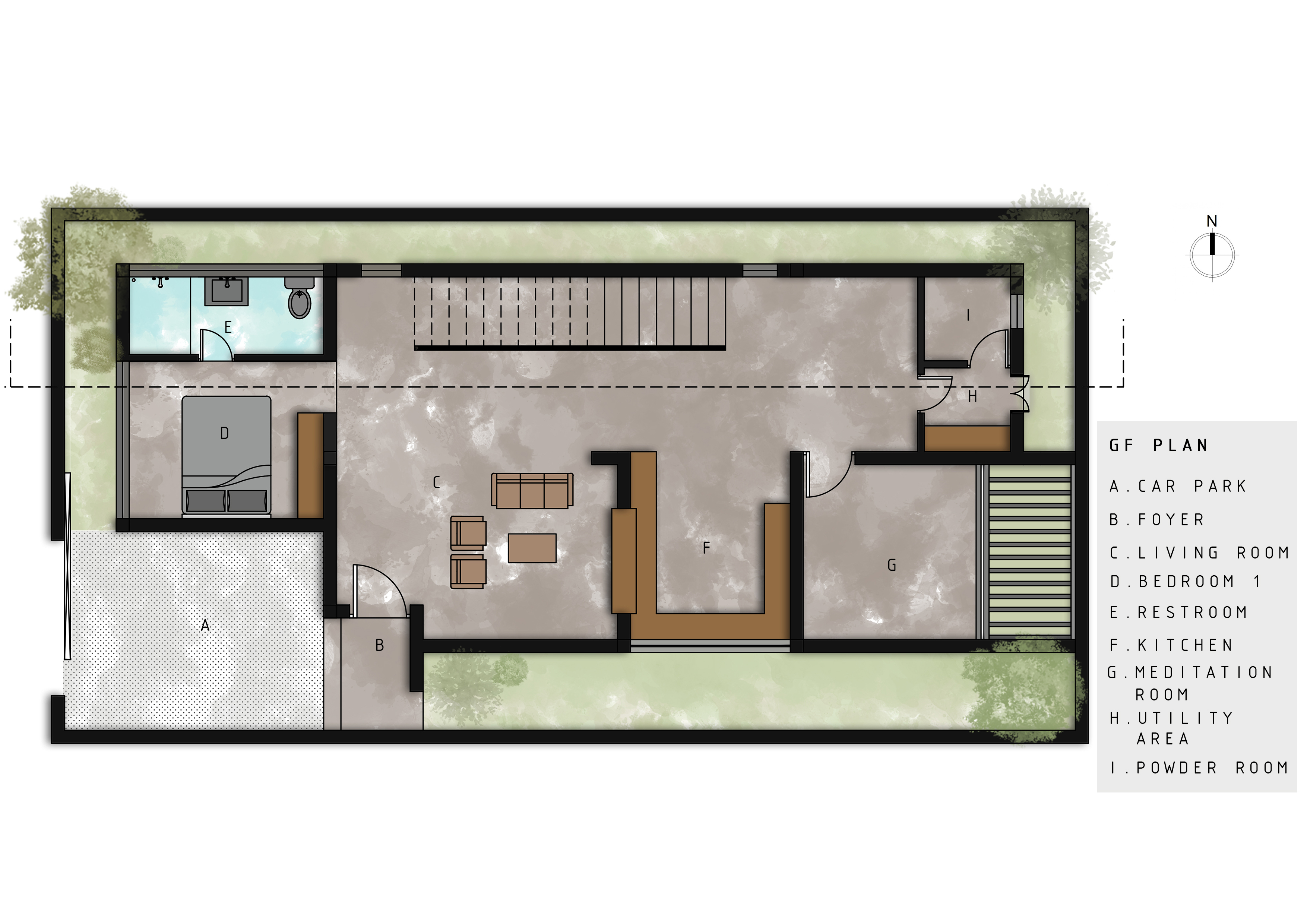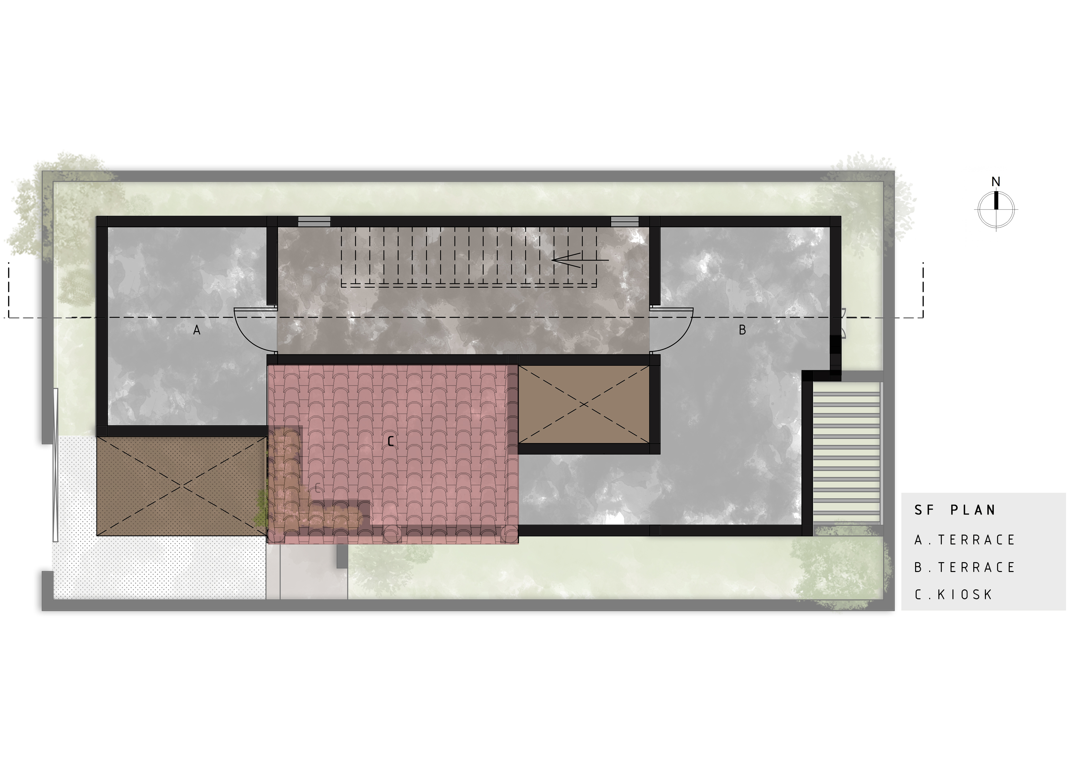 linearity of the site encouraged the planning to be simple and vernacular with