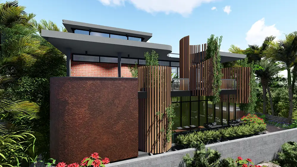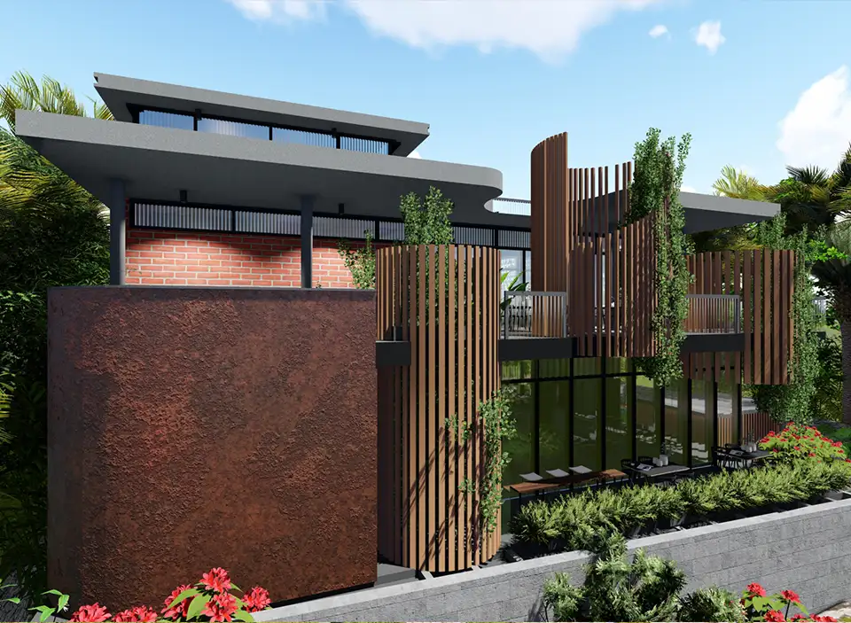 The use of Corten steel adds a rustic touch, while the bricks provide a sense of warmth and character.