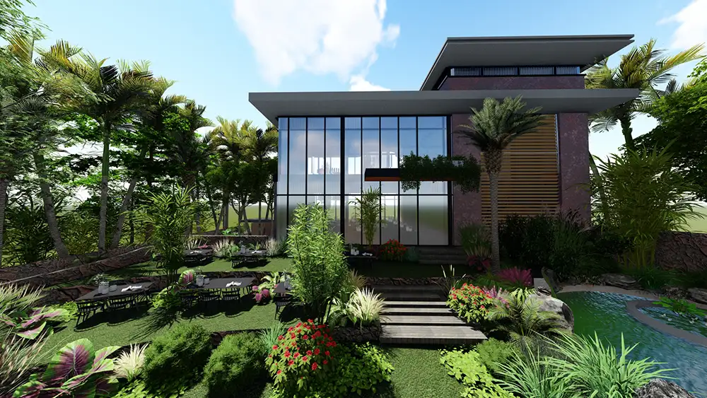 surrounding environment. To complete the aesthetic, we've integrated lush green landscape throughout the