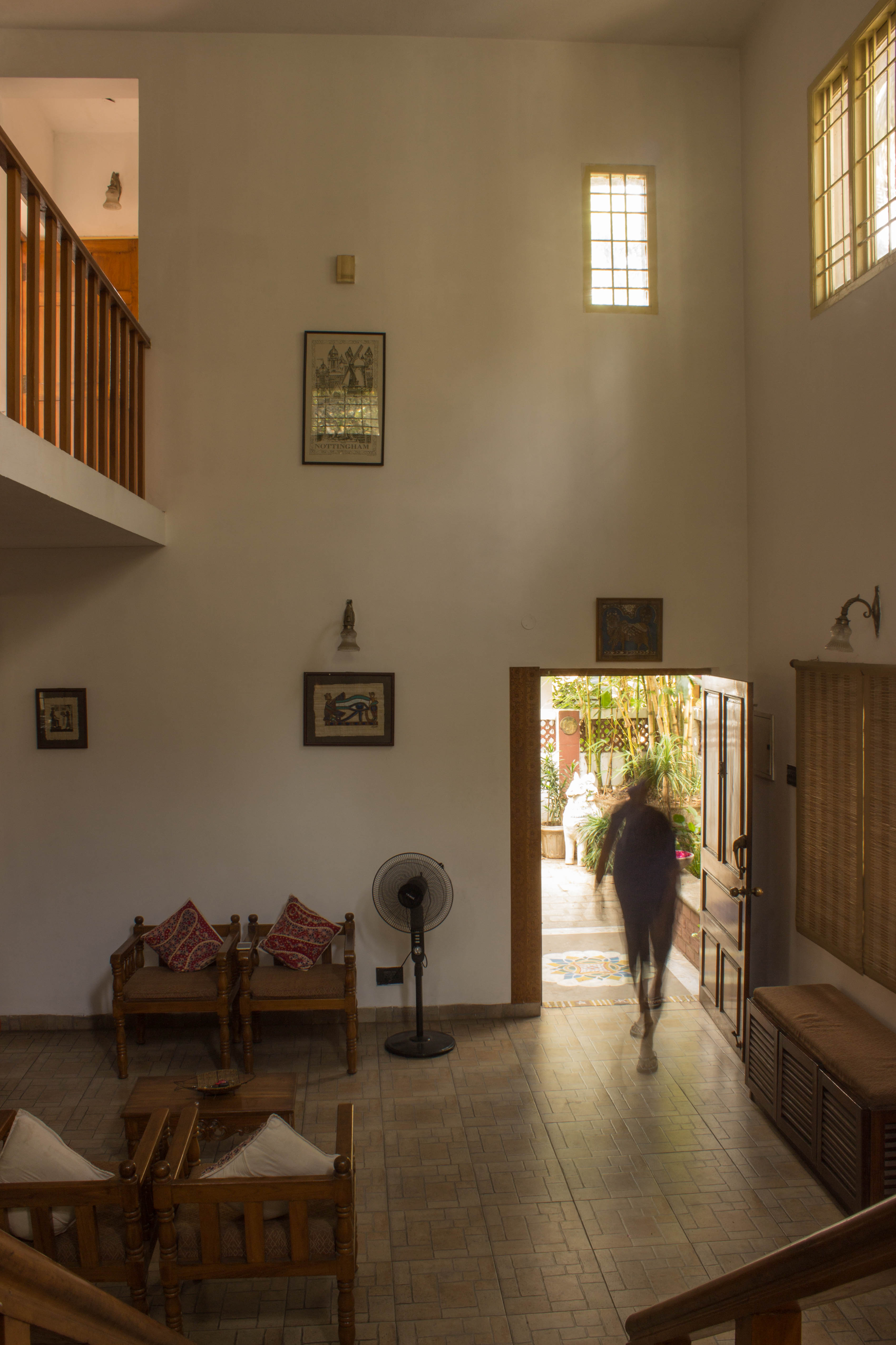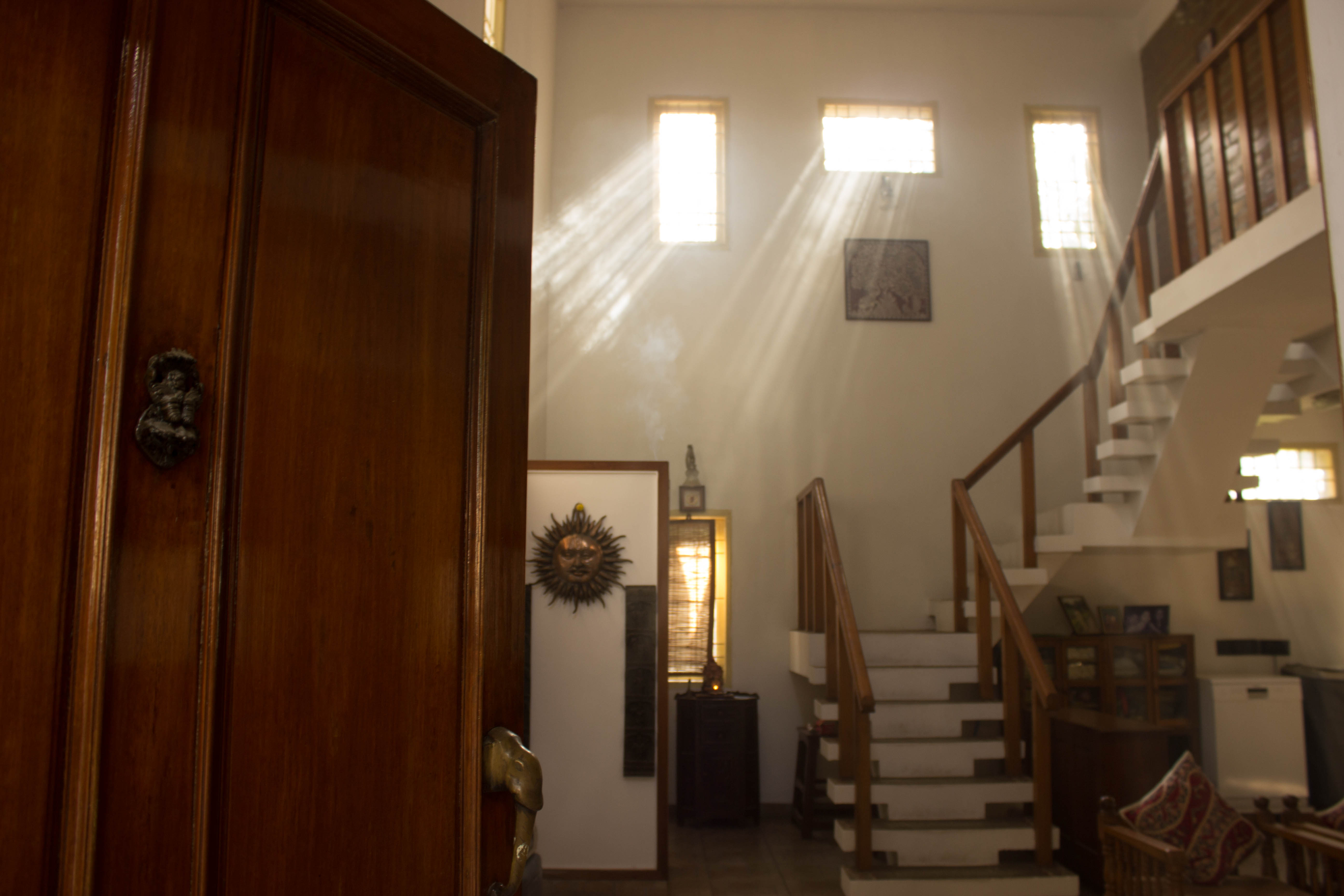The brief was to design and build a spacious looking home for a family of five and two dogs in a small plot located in a densely packed residential colony.