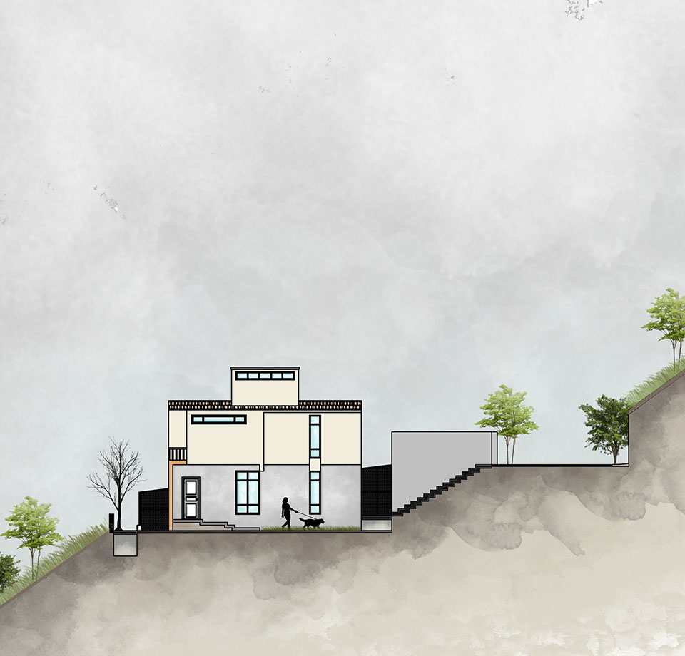 The brief includes the design of a compact retirement house for a couple nestled in a tea plantation valley. The house is designed to minimize impact of its footprint on the surrounding environs.