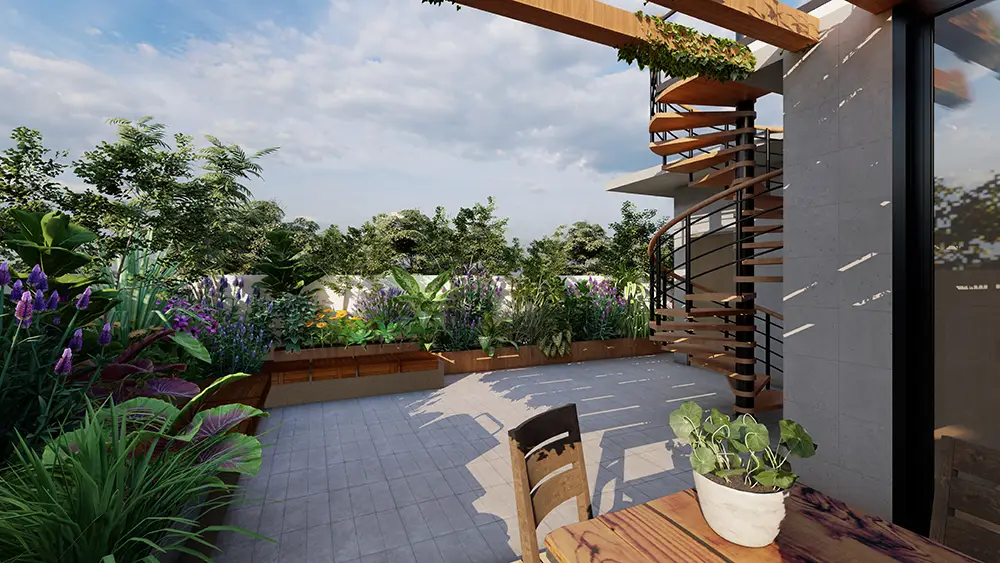 The Brick Villa's design extends beyond its walls, with carefully designed gardens and outdoor spaces that