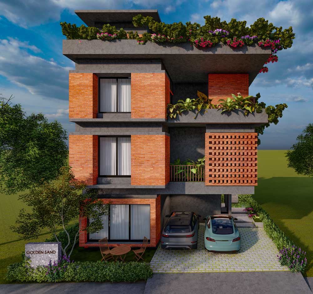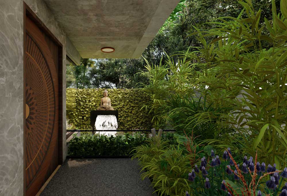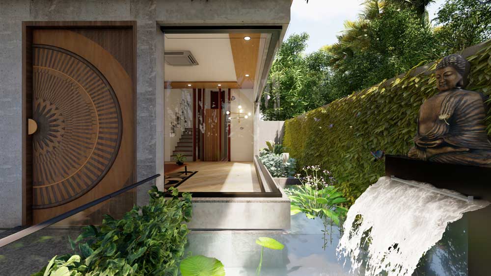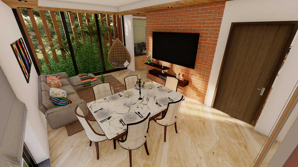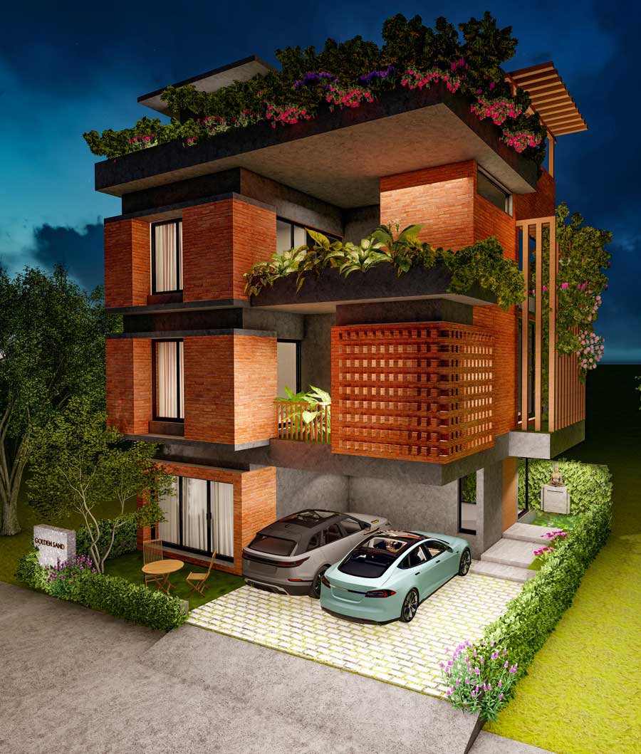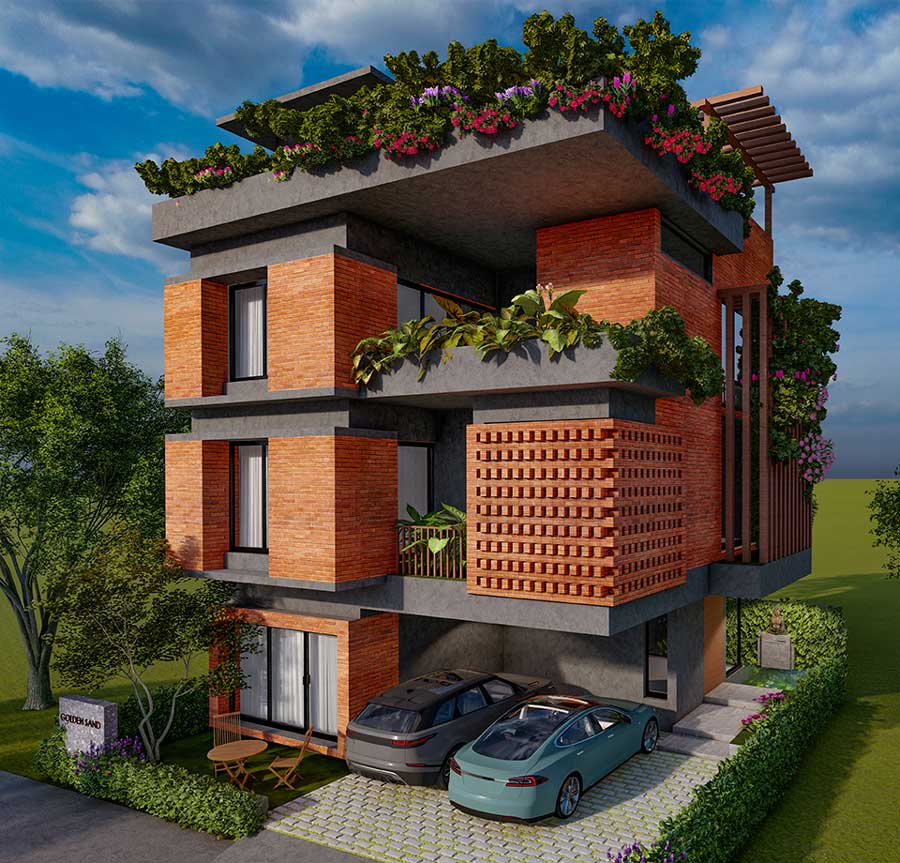 The architectural design of The Brick Villa with its harmonious integration of natural surroundings and its