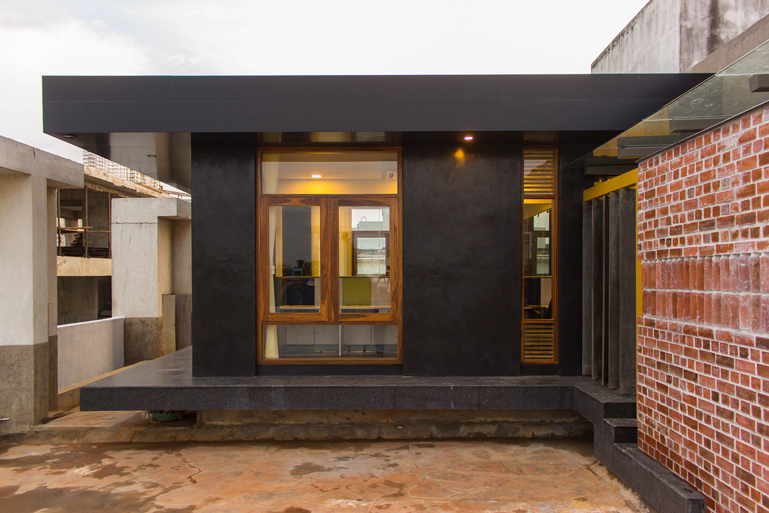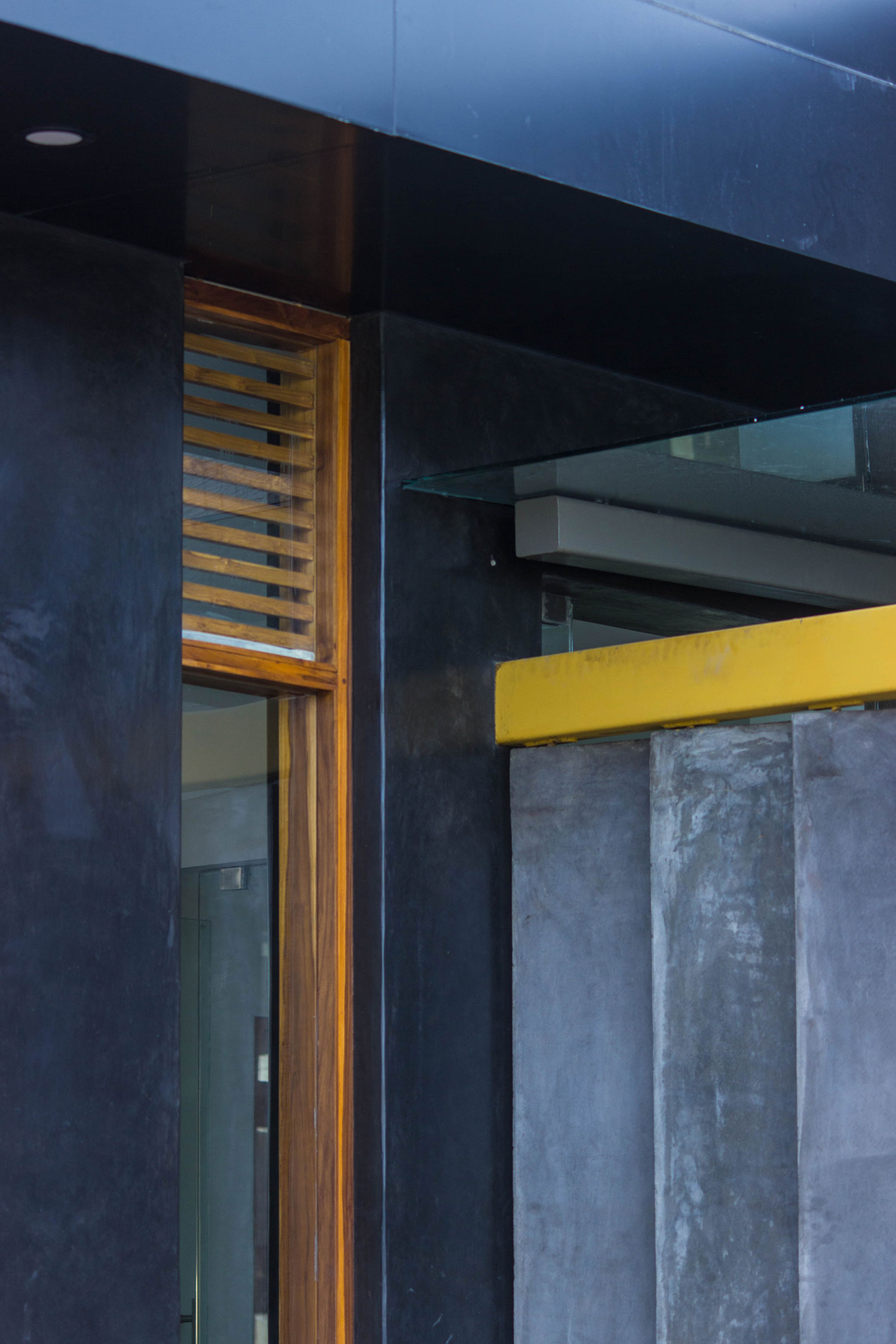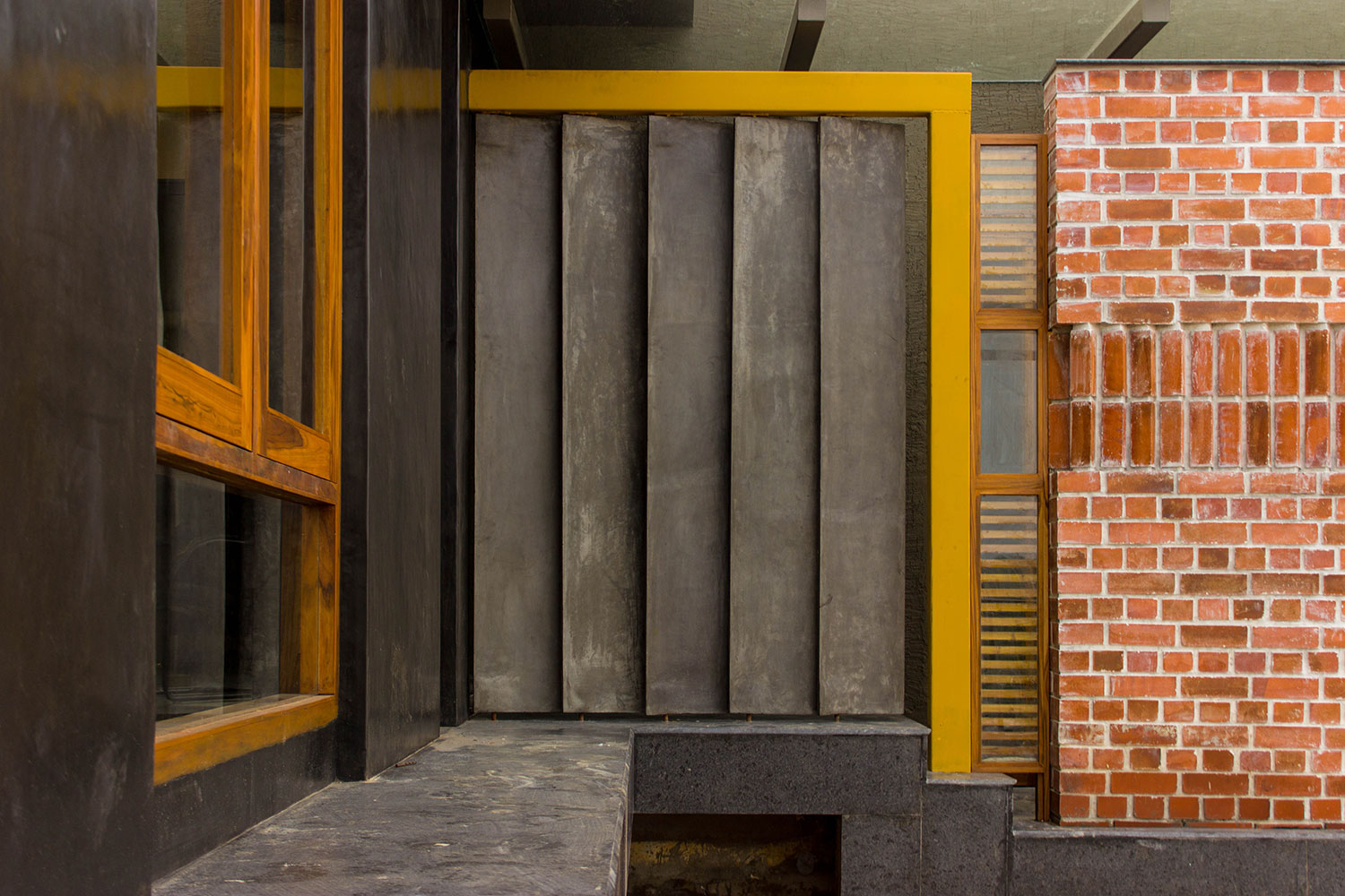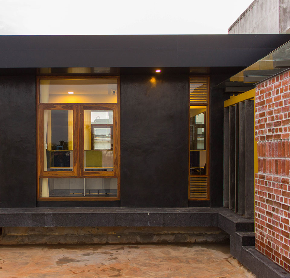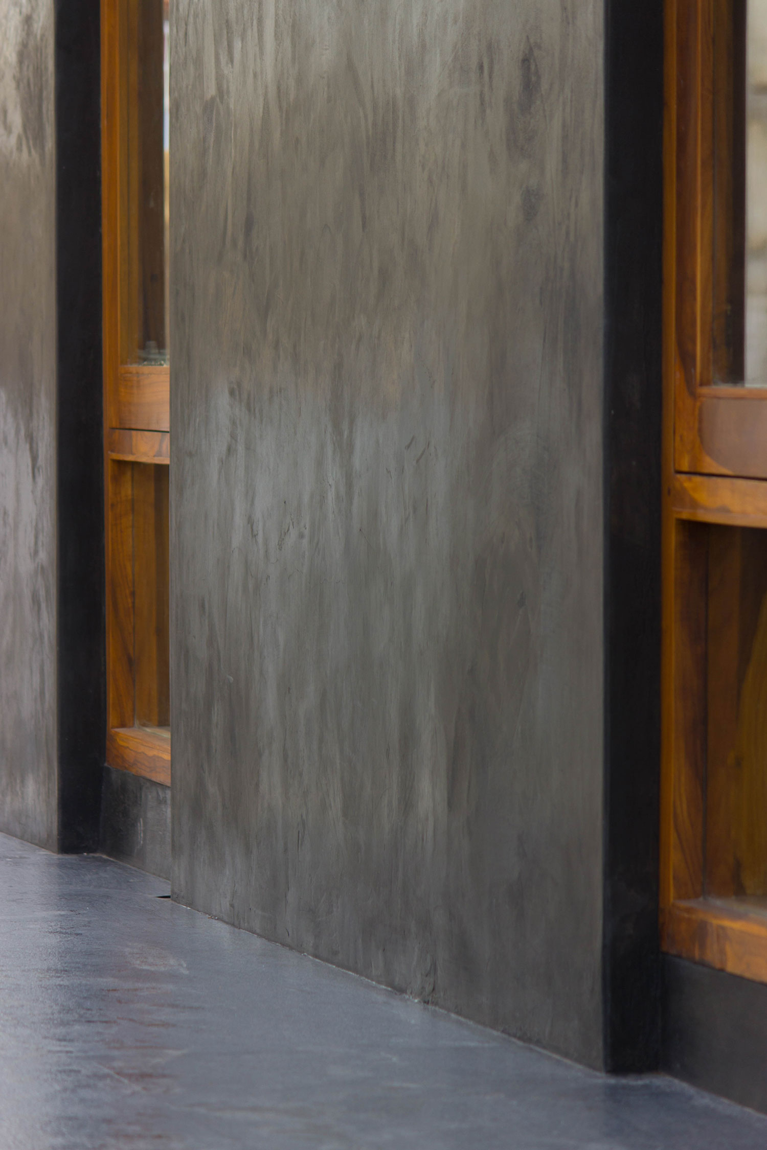 This space was designed as a contemporary studio apartment. Inspired as always, by rustic techniques, we tried creating a sophisticated ambience by finishing the walls with grey polished cement oxide. This finish, which is age old in India, but has only been used on flooring in the past, looks beautiful when applied on walls too, and can instantly transform a space to look any way you’d like it to, depending on the colour and final texture of the cement.
