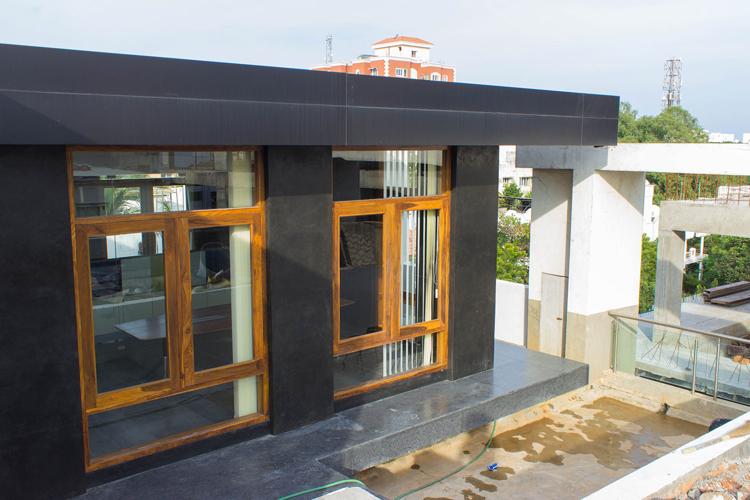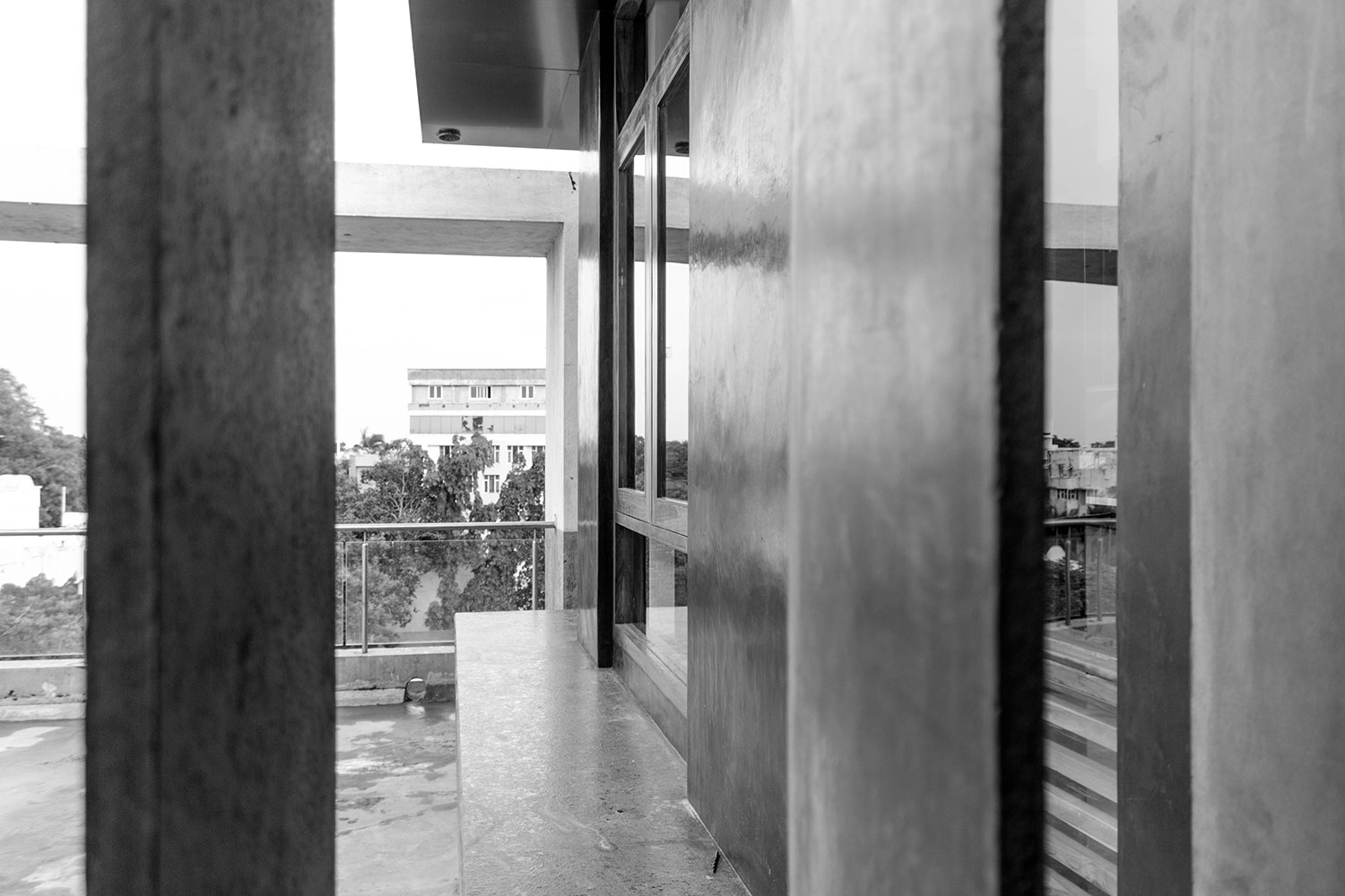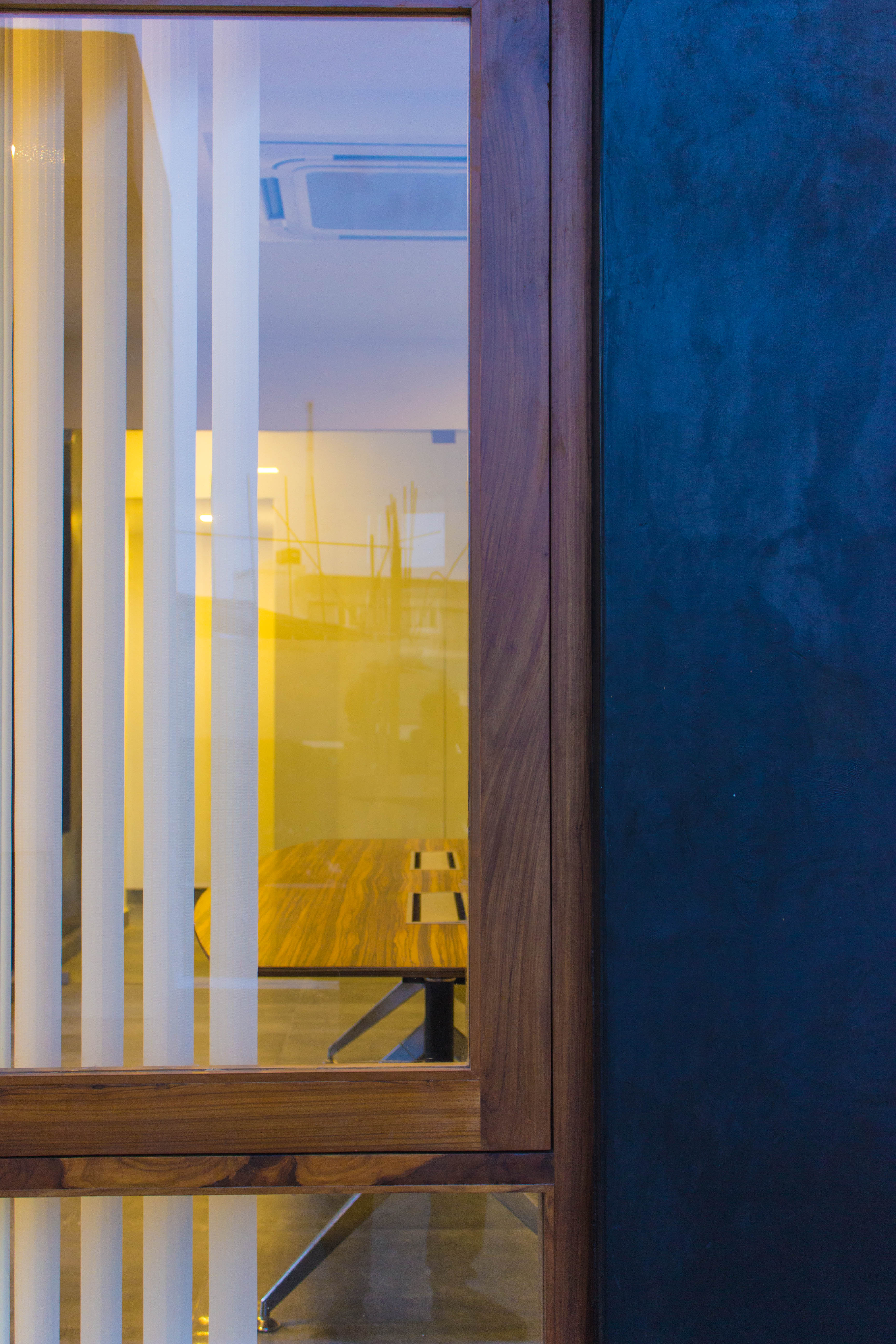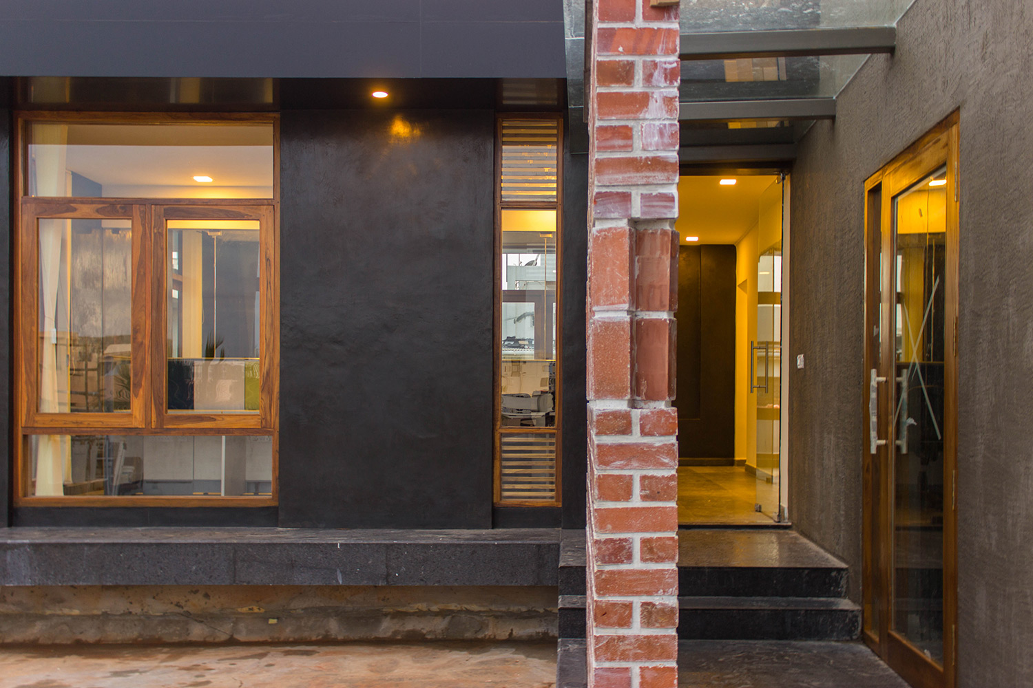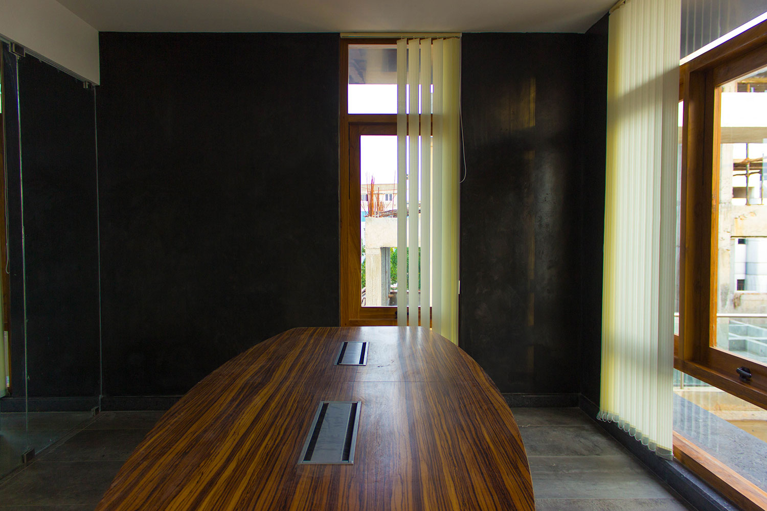 This space was designed as a contemporary studio apartment. Inspired as always, by rustic techniques, we tried creating a sophisticated ambience by finishing the walls with grey polished cement oxide. This finish, which is age old in India, but has only been used on flooring in the past, looks beautiful when applied on walls too, and can instantly transform a space to look any way you’d like it to, depending on the colour and final texture of the cement.